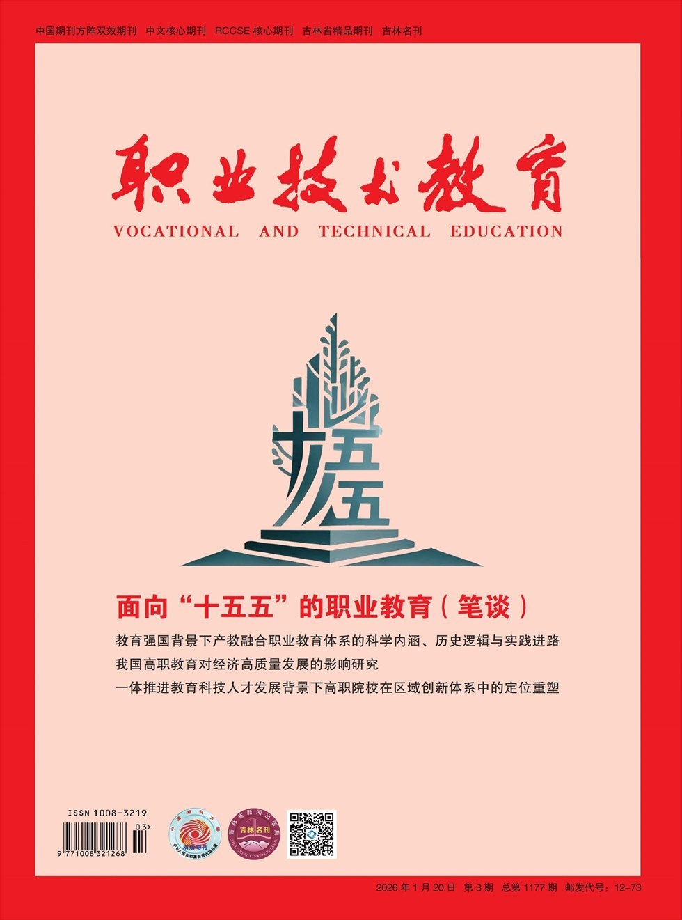 《职业技术教育》创刊于1980年,是新中国成立后创办的第一本公开出版的职教专业期刊,是中国职教学会期刊委员单位,被新闻出版署评为中国期刊方阵“双效期刊”,是吉林省精品期刊,中文核心期刊,RCCSE核心期刊。