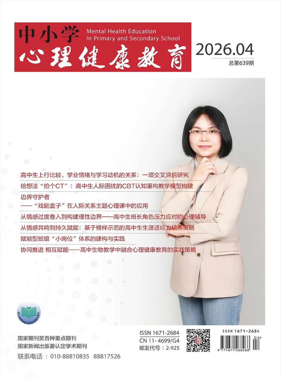 《中小学心理健康教育》杂志为半月刊,创刊于2001年7月,每月1日和15日出版。《中小学心理健康教育》由中国民主促进会中央委员会主管、开明出版社主办,是国内第一本专门以中小学心理健康教育为内容的专业性杂志。2005年1月,荣获国家新闻出版总署第三届国家期刊奖百种重点期刊。