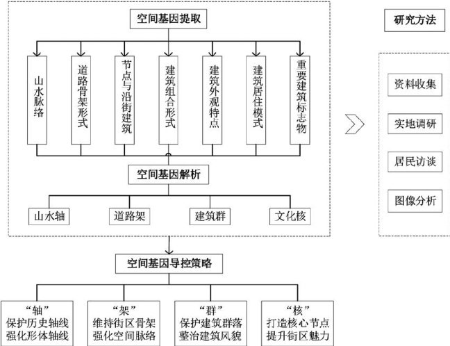 摘要:历史街区是一个城市的文化载体,具有独特的城市风貌和特殊的历史记忆。但随着城市更新工作的推进,历史街区肌理断裂和传统风貌趋同的问题日益凸显,传统规划设计方法往往存在模式化和表征化的问题,导致历史街区缺乏原有特色。为解决这一问题,本文引入“空间基因"概念,以赤峰市头道街历史街区为研究对象,通过文献分析、现场走访和居民访谈等多种方法,对头道街历史街区的空间基因进行识别、提取与解析,提取出“轴、架、群、核”四类具有代表性的空间基因,并进行解析。进而提出更新策略,探索其保护与发展的新路径。