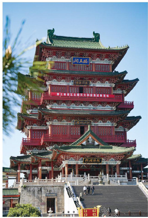 我国有许多古建筑,其中能让我沉醉的便有被誉为“江南三大名楼”之一的滕王阁。这座位于江西南昌赣江边的古老建筑,不仅外观雄伟,还有悠久的历史和古朴的文化。滕王阁始建于唐朝,距今已有1300多年的历史。据说,它的建造者是唐高祖李渊的儿子李元婴,因为他的封号为“滕王”,所以这座楼阁被命名为“滕王阁”。 滕王阁的建筑风格最有特色。它本是一座仿宋式结构的木建筑,后经钢筋混凝土辅建而成,但外观仍有古代阁楼