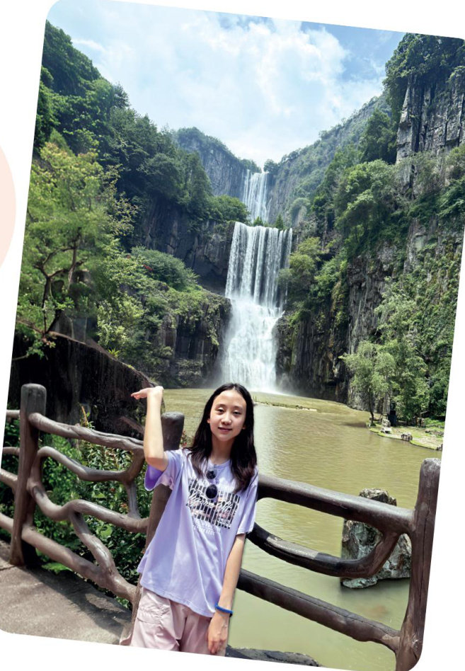 早听说括苍山脉深处藏着“中华第一高瀑”,那水流从云端坠向深谷的景象,在我心底盘桓了许久。这个假期,我满怀期待地踏入百丈。 步入景区,低沉的水声便从山谷深处隐隐传来,沿着蜿蜒的石阶下行,林木葱郁,斑驳的光影透过缝隙照在石阶上。水声由远及近,行至半山腰,一座古朴的亭子悬于崖边,这便是听祭亭。我赶紧凑到栏杆边远眺,眼前的景象豁然开朗:巨大的水帘自高耸的悬崖顶端倾泻而下,仿佛银河倒悬,直坠深潭。那便是百
