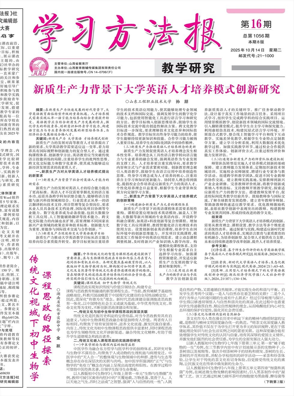 1-8版 | 基于教育家精神的高中政治教学模式创新