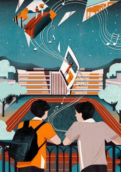 初三的晚自习,教室里安静得能听到窗外微风扫过了树梢,又掀起窗帘一角……我的脑袋喜爱这清醒,耳朵却嫌弃它清静。完成一门课的作业后,我心念一动,手摸索进书包偷偷打开MP3,又看了一眼代班坐镇的化学老师程姐,她正低着头看书。 很好,我快速戴上左侧耳机,顺手捋了捋耳侧的碎发。 流淌的旋律瞬间把耳朵灌满,我惬意地投入下一门课的作业。不知过了多久,写完一面卷子,耳机里传来一阵熟悉的旋律——《青