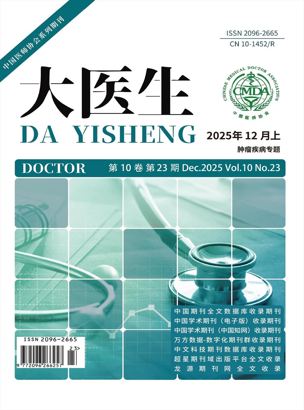 《大医生》杂志(半月刊)是经国家新闻出版广电总局批准,由中国机械工业联合会主管、北京卓众出版有限公司主办的国家级综合性医学学术期刊。本刊以习近平新时代中国特色社会主义思想为指导,紧密跟随世界医学科技发展的潮流,为推动中国医学科技进步和知识创新、促进基层医生医学学术交流和医学事业发展服务,提高基层医疗水平,繁荣中国医学科技出版事业为办刊宗旨。主要栏目有专家特稿、论著、临床研究、中医中药、药物与临床、预防医学、医学影像、病例报告、综述等。是中国医师协会系列期刊,被万方、维普、超星等数据库全文收录。