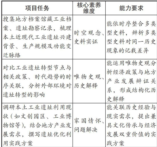 【摘要】“双新”(新课程、新教材)改革对高中历史教学提出培养学生核心素养、整合课程资源、创新教学模式的更高要求。项目化学习(PBL)作为以学生为中心的探究式教学模式,虽与“双新”核心理念高度契合,但两者的结合在实践中存在与本土文化脱节、教学目标模糊、实施路径单一等现实问题。文章立足“双新”背景下高中历史教学要点,分析开展高中历史本土化项目化学习的意义,并从主题设计、资源整合、评价体系构建三个维度提出具体实践策略,以期实现历史教学与本土文化深度融合,助力学生历史核心素养的发展。