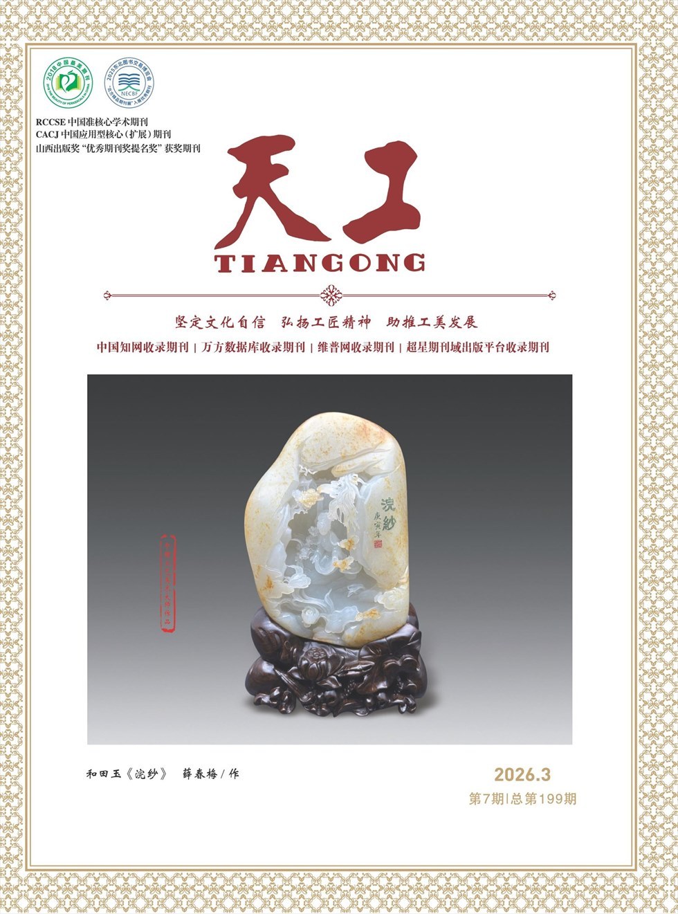《天工》杂志以传播工艺美术文化为核心,以轻松的笔调讲述工艺美术美的历程。知识性、情感性、可读性并重。儒雅而时尚、明丽而清新、高端而大气是我们追求的风格。