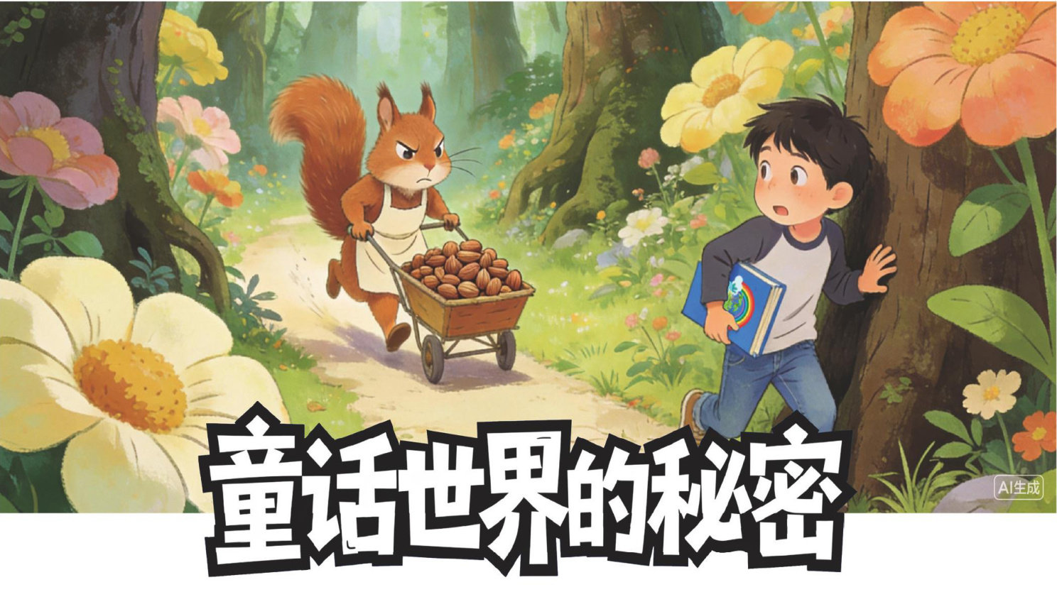 坠入童话王国 豆豆把作业本推到一边,铅笔滚到了地板上。 “作业,作业,天天都是作业!”豆豆嘟着嘴抱怨道,“要是能活在童话世界里该多好!那里的人从来不用写作业,也不用工作,整天就是吃喝玩乐!” 豆豆的目光在房间里转了一圈,最后落在书架上一一本厚重、老旧的童话书吸引了他的自光。书脊上烫金的字迹虽已经有些模糊,但还能辨认出“童话王国奇遇记”的字样。书的封面是深蓝色的,上面印着一座被彩虹环绕的神秘小