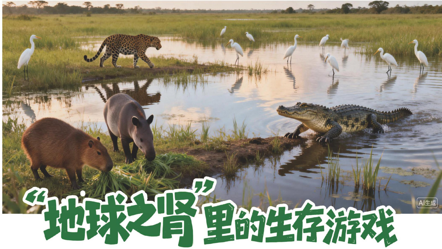 湿地,被称为“地球之肾”,与森林、海洋并列为全球三大生态系统类型。湿地基本分为五大类:近海及海岸湿地、河流湿地、湖泊湿地、沼泽湿地和库塘。它是水陆相互作用形成的独特生态系统,具有季节或常年积水、生长或栖息喜湿动植物等基本特征,是自然界生物多样性最丰富的生态景观。 在巴西三大生态区域之一、被誉为“人类最后净土”的潘塔纳尔湿地中,就孕育着3500种植物、650多种鸟类、超过400种鱼类,更栖息着以濒