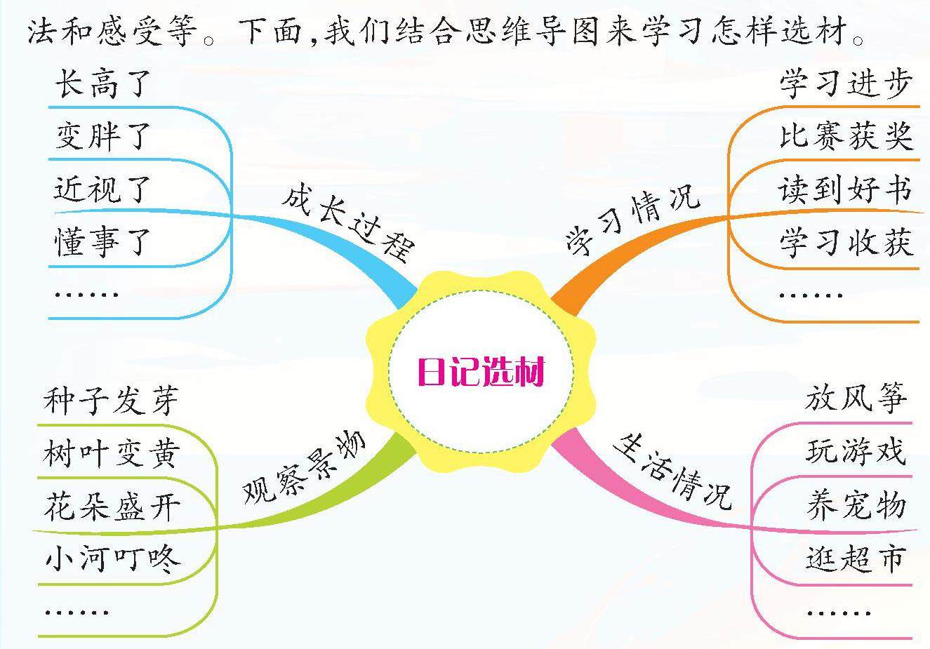 日记选材广泛,可以记事,可以写人,可以写物,可以写景……那怎样才能写好日记呢? 一、了解日记的格式。日记有固定的格式,第一行中间写当天的日期(年、月、日)、星期几、天气情况等;从第二行开始写正文,每个自然段前要空两格。 二、精心挑选内容。一天中会发生很多事情,但不要都写下来,否则日记就会变为流水账。要挑选有意义的、印象深刻的、感触深的事情来写。如:妹妹哭鼻子了、公园里的菊花开了、和好朋友闹矛盾