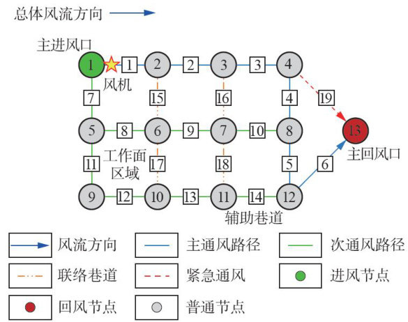 摘要:为应对地下矿井工作面用风需求,提出一种分支风量自适应调控方法。依据矿井通风三大基本定律建立地下通风网络数学模型,确定以最小风机功率为目标函数建立非线性规划模型,并利用罚函数法去约束化。通过风网灵敏度的相关知识确定最优可调分支集并确定风量调节范围,引入苔藓生长优化算法对风量寻优流程进行优化,并通过性能对比分析验证了该算法通风网络解算的收敛性能。基于矿井风量智能调控试验平台,对灵敏分支风量调控方案进行试验验证。设计了系统的总体结构,开发了相关的功能模块,调用IMGO对目标风量进行寻优,输出最优的调风方案与具体的调风参数,验证了基于灵敏分支风量调控方案的可行性与有效性。结果显示,利用IMGO算法求得的最优风机功率为 240.56kW ,平均风机风压为 2588.53Pa ,平均迭代次数为270次,平均迭代时间为 20.5s ,各项数据均明显优于其他两种优化算法。因此,改进后的苔藓生长优化算法在寻优性能和稳定性方面均有较大提升,能够提高地下通风网络解算的效率。研究结果为矿井通风网络的优化提供参考。
