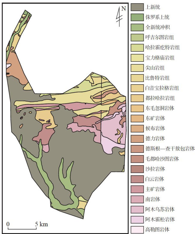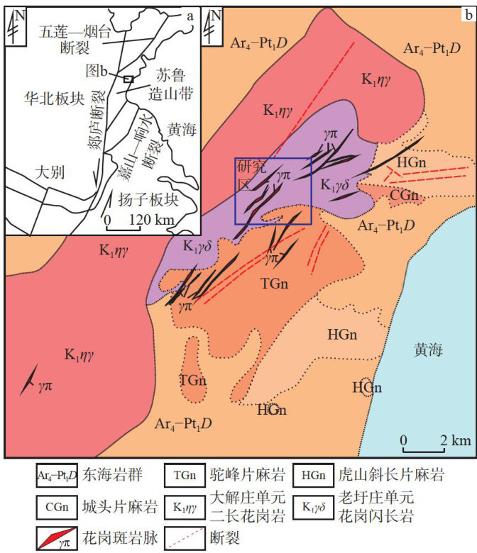 摘要:苏鲁造山带是江苏固体矿产勘查工作的重点研究区域,矿体埋藏较深,导致研究相对匮乏。阐述了苏鲁造山带南缘的赣榆地区地层、构造及岩浆岩等地质特征,并通过土壤地球化学、激电中梯测量及激电测深等物化探手段,共圈定Mo异常8处,激电中梯异常11处。择优对物化探异常套合较好的激电中梯异常 ηs5 与化探Mo-2异常开展地表槽探查证及深部钻孔查证,共发现7条钼铜矿体,表明综合物化探方法在赣榆地区具有较好的找矿效果。在物化探工作的基础上,从断裂、蚀变与矿化、物探、化探等方面对赣榆地区找矿前景进行了重点分析。已发现矿体均赋存于北东向、北北东向断裂中,产状与断裂一致。矿化蚀变作用主要发育在岩体及断裂两侧,表明矿床形成与岩浆活动有关,金属矿化主要为黄铜矿化、辉钼矿化、黄铁矿化、磁黄铁矿化等。物化探异常与断裂、矿化蚀变及花岗斑岩套合良好,表明物化探异常、断裂及花岗斑岩等套合部位具有较大找矿潜力。