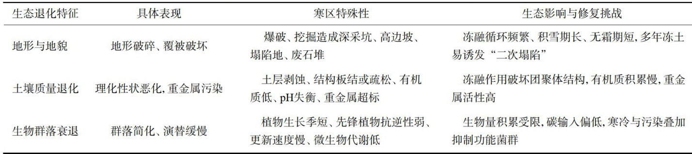 摘要:研究旨在系统分析黑龙江省寒区废弃矿山生态退化特征及其对区域碳汇功能的影响,探索提升矿区碳汇能力的生态修复路径。通过现场调查、土壤采样及微生物群落测序等方法,对废弃矿山区域的植被覆盖度、土壤理化性质及微生物多样性进行了综合评估。结果表明,废弃矿山普遍存在土壤有机碳含量显著降低、结构破坏严重和微生物活性低等问题,微生物群落结构发生明显变化,植被恢复程度与土壤碳储量呈显著正相关。基于群落功能构建与碳循环强化思路,研究提出了以植被重建、土壤改良与微生物功能优化为核心的综合修复策略。在植被重建方面,优选山杨、樟子松、沙棘、紫穗槐、马葡和紫花苜蓿等具有较强适应性、抗逆性和固碳潜力的植物,构建多层次、多功能的群落结构,以增强生态系统稳定性与碳汇持续性;在土壤改良方面,通过施加腐殖酸、有机肥和生物炭等改良材料,改善土壤结构与团聚体形成,促进碳输入与稳定固存;在微生物功能优化方面,引入丛枝菌根真菌及功能性细菌,激活“植物-微生物-土壤”碳循环系统,促进碳的高效转化与储存。该综合策略可有效提升寒区矿山生态系统的碳汇功能,为废弃矿山生态修复与区域碳中和目标提供科学依据和技术支撑。