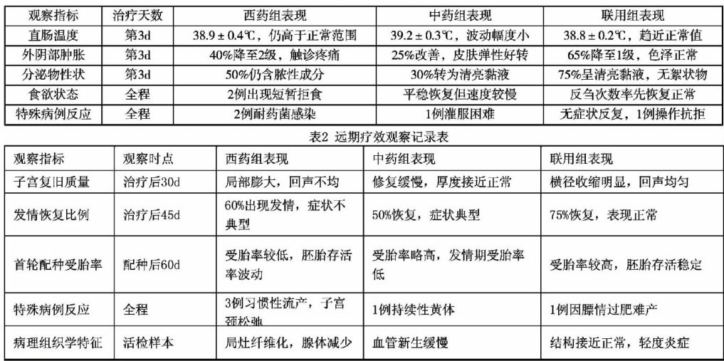 本文在湟源县地区针对羊子宫内膜炎影响母羊繁殖性能的生殖系统疾病开展不同药物治疗效果对比试验,选取60例确诊病例,随机分为五组,分别采用高锰酸钾溶液(对照组)硫酸庆大霉素、恩诺沙星子宫注入剂、硫酸庆大霉素 + 恩诺沙星子宫注入剂组合以及益母生化散 + 醋酸氯已定栓组合治疗,系统评估各治疗方案效果。硫酸庆大霉素与恩诺沙星子宫注入剂联合使用,以及益母生化散与醋酸氯己定栓组合治疗均达到 100% 治愈率,