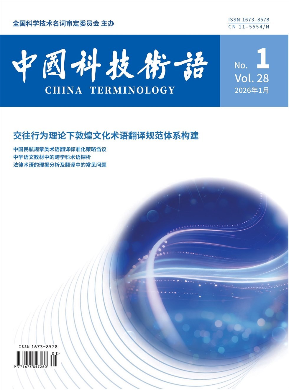 《科技术语研究》主办单位为全国科技名词审定委员会。本刊是我国权威的唯一的发布和推广规范汉语科技名词的刊物,是研究我国术语学理论、探讨术语定名规律的窗口。以培育一支有研究水平的队伍,促进术语学在我国的发展为主旨。