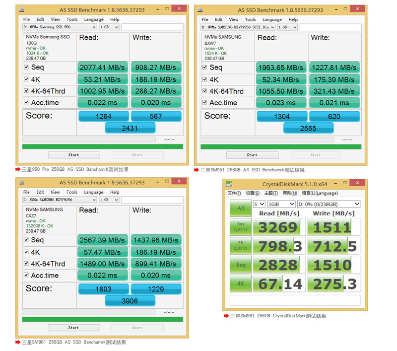 在ASSSD和CDM这类测试中,三星SM961表现出了比950 Pro和SM951强大得多的性能,但由于驱动的问题,SM961的全部性能还未完全发挥出来,但即便如此,SM961在回放测试中的表现还是比Intel 750 400GB更强。 编辑评价 作为SM951的继任者,SM961对主控和闪存都进行了大换血,它采用了全新的“Polaris”主控和三星V-NAND MLC闪存,纸面性能有了很大的