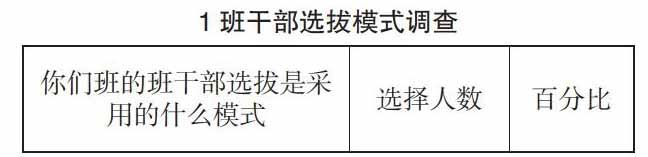 一个班级整体的精神面貌以及内部凝聚力的形成由这个班级的管理的优劣决定,而一个十分有力度的班级领导也与班级的管理密切相关。一个优秀的班级里,不仅要有个称职负责的班主任,也需要有一支能够独立工作、素质优秀的班干部的团队。这些出色的学生干部不仅是老师的得力助手,同时这些班干部的良好的品行、思想以及作风在同学中间也起着模范带头作用,能够积极引导学生们积极思考的学风以及奋发向上的班风。同时,班级的学生干部可