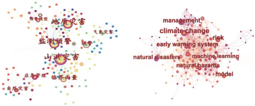 摘要为推进国家安全体系和能力现代化发展,对自然灾害预警的研究是十分必要的,因此,本文使用文献计量软件CiteSpace,选取中国知网与WebofScience分别作为中文和外文数据库,通过对国内与国外在自然灾害预警研究方面的关键词共现图谱、关键词聚类图谱与关键词突变图谱的分析,论述了国内外预警研究的前沿热点与发展趋势,最后比较了国内外在该领域研究上的差异。建议应加强我国与国际之间自然灾害预警研究的沟通交流,促进预警国际合作,提升民众防灾减灾意识与能力,推进国家安全体系和能力现代化建设。